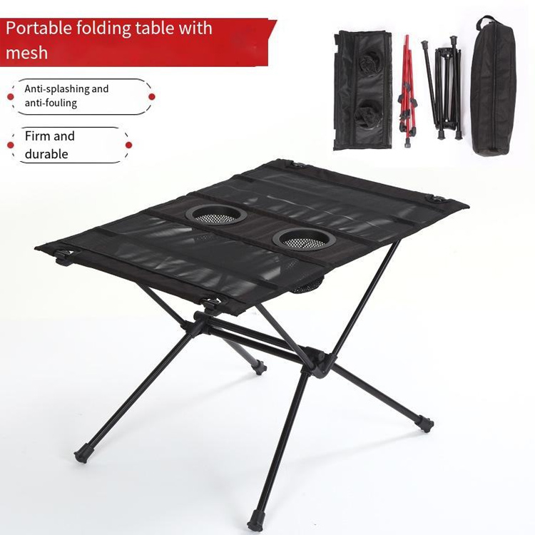 Ultrakönnyű kempingasztal Nylon, légáteresztő hálós összecsukható asztal. Az Ön tökéletes hordozható asztali megoldása szabadtéri kalandokhoz. Ez az ultrakönnyű kempingasztal tartós nylon szerkezettel, lélegző hálós felülettel és beépített pohártartóval rendelkezik. Az összecsukható kialakítás maximális hordozhatóságot biztosít minden szabadtéri tevékenységhez.